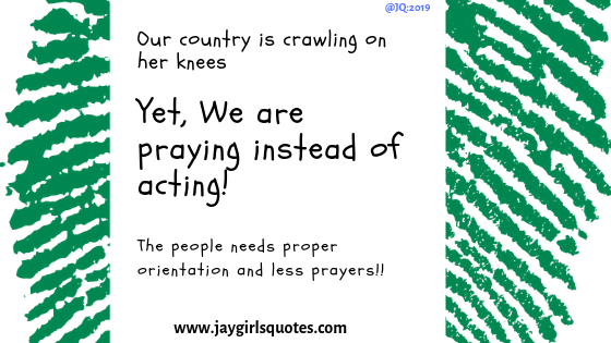 Wherefore shall we rid ourselves of this ignorance that’s slowly becoming a deadly scourge to Africans? If majority of our youths have become this clueless, how then do we prepare for the future? If you’d ask me, I’ll advise then to start acting and stop praying.